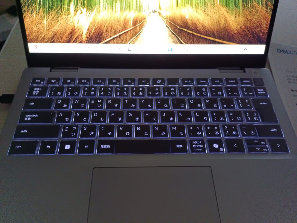 キーボードは残念ながら日本語キーボードですが、バックライトで照度二段階とオフが選択出来ます。