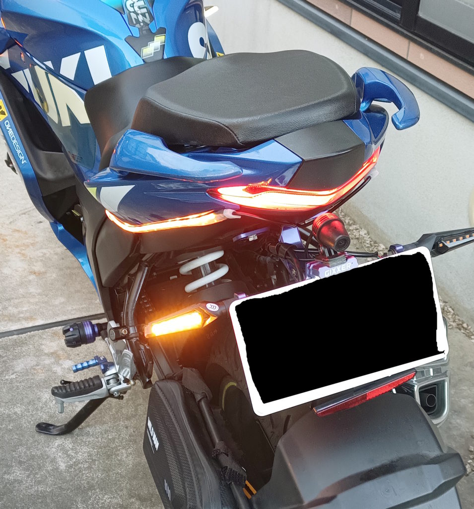 まっ、シートサイドカウルにはバータイプのシーケンシャルを貼り付けてるしええんやないかな。
