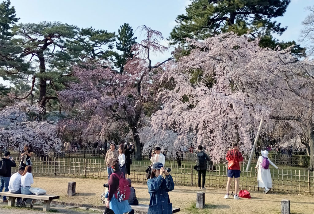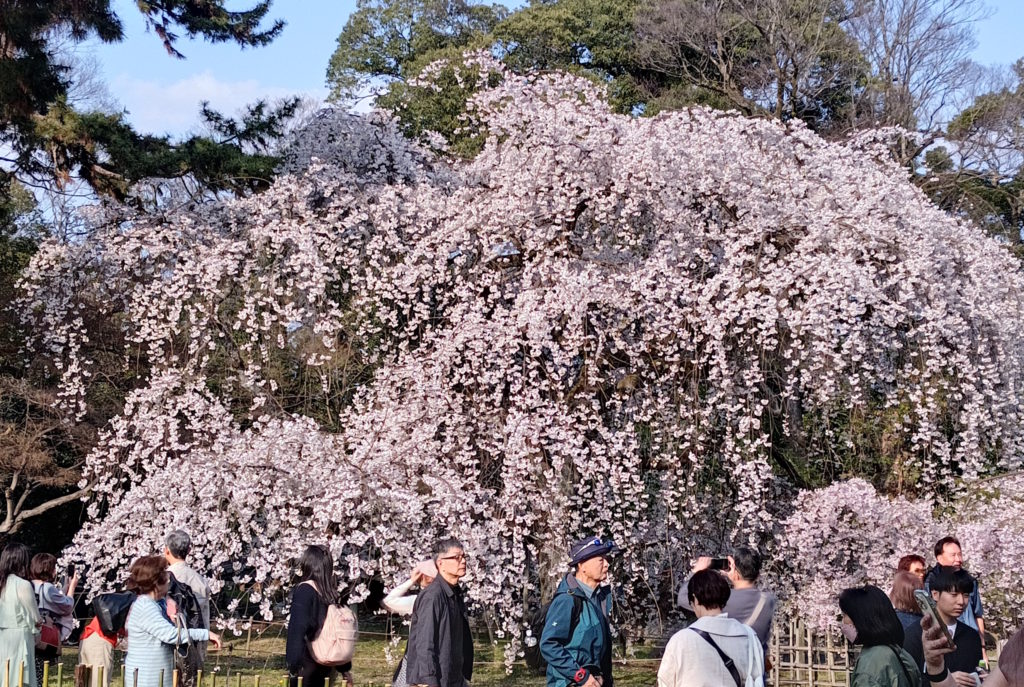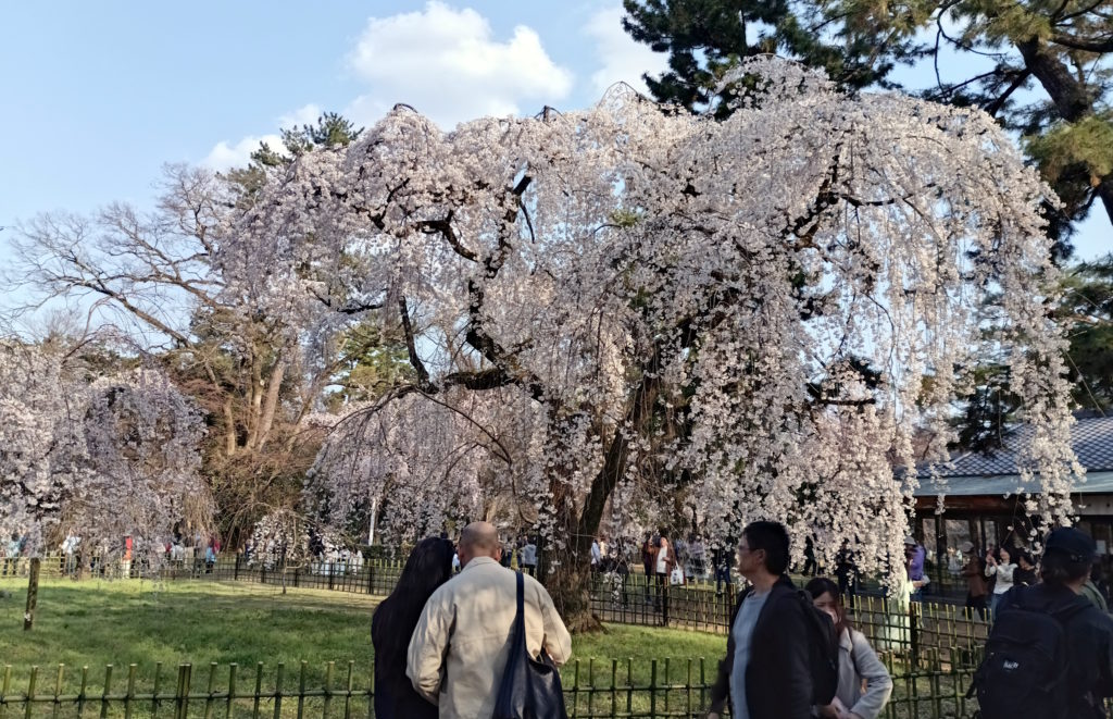 御所内で案内板見て移動したら…、なんと枝垂れ桜が満開!